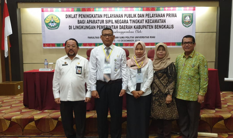 Turut hadir dalam acara pembukaan Diklat teknis dan aparatur kecamatan, Asisten Pemerintahan Sekretariat Daerah Hj. Umi Kalsum dan narasumber dari Syafri Harto, Dekan Fakultas Ilmu Sosial dan Ilmu Politik Universitas Riau.