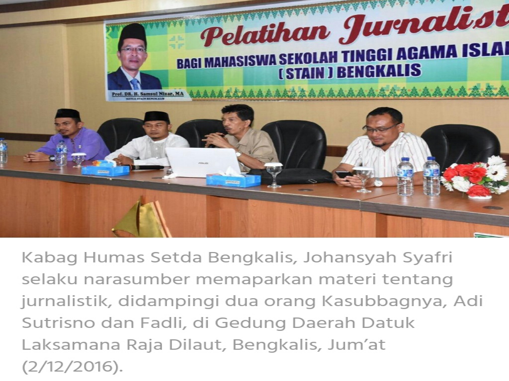 Johan mengatakan itu ketika memberikan materi pada pelatihan jurnalistik bagi mahasiswa Sekolah Tinggi Agama Islam Negeri (STAIN) Bengkalis di Gedung Daerah Datuk Laksamana Raja Dilaut, Bengkalis, Jum’at (2/12/2016).