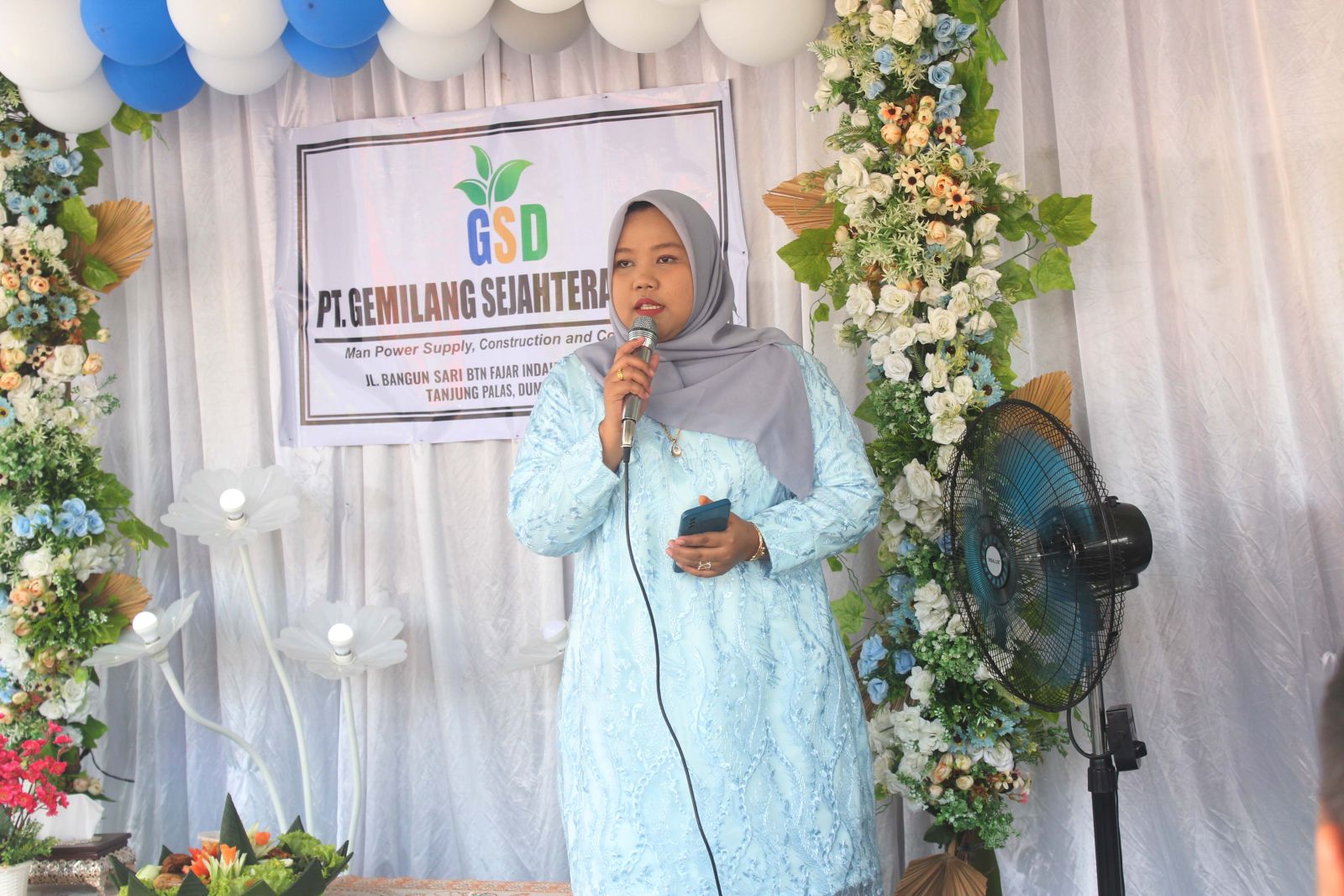 Pembukaan acara diawali dengan do’a bersama selamat atas peresmian PT. Gemilang Sejahtera Dumai dipimpin oleh Ustadz Abu Bakar.