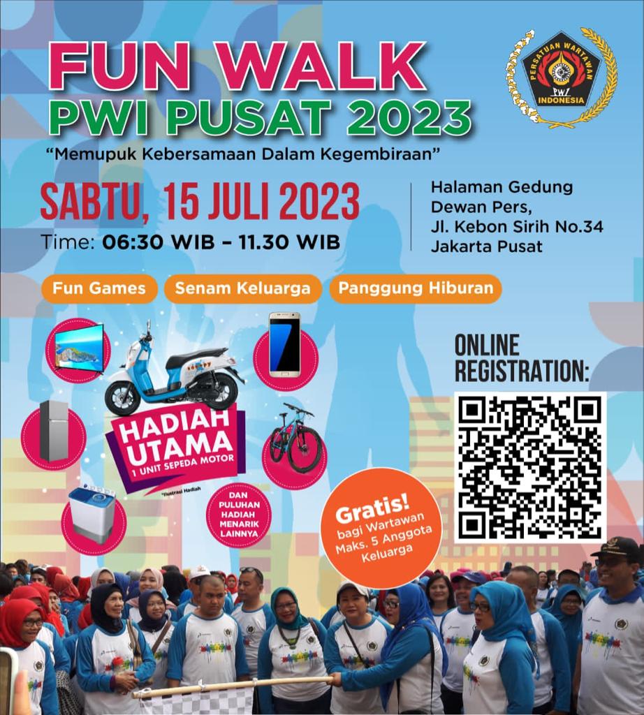 Fun Walk atau Jalan Santai HUT ke-62 IKWI dilaksanakan Sabtu (15/7/2023) pagi, dengan start pukul 07.00 WIB dari halaman Gedung Dewan Pers, Jalan Kebon Sirih, Jakarta Pusat.