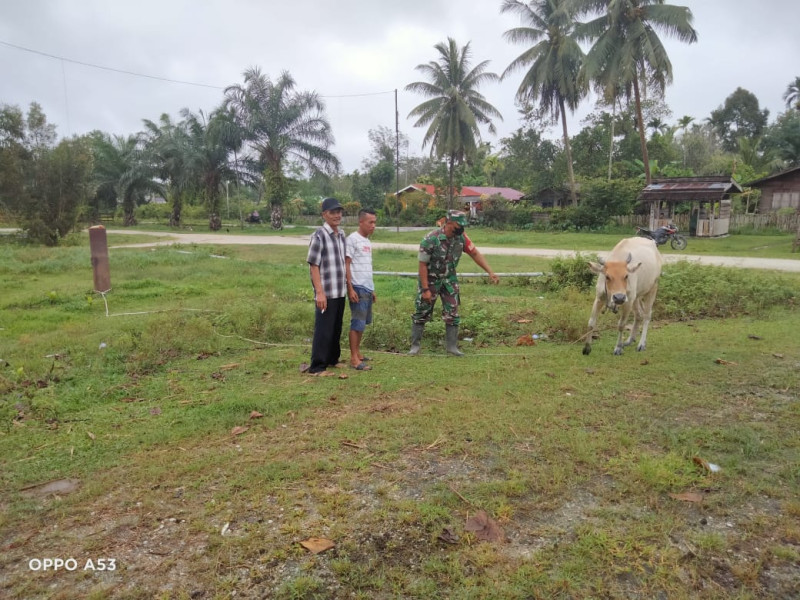 BENGKALIS (MR) - Babinsa Serda Ansari dari Koramil 06/Merbau Kodim 0303/Bengkalis aktif melakukan upaya pencegahan penyebaran Penyakit Mulut dan Kuku (PMK) pada hewan ternak di wilayah binaan. Dengan rutin melakukan pemantauan dan pengecekan PMK pada hewan, Babinsa berusaha mengantisipasi dan memastikan hewan-hewan ternak milik masyarakat terhindar dari penyakit yang berpotensi merugikan sektor pertanian dan peternakan.
