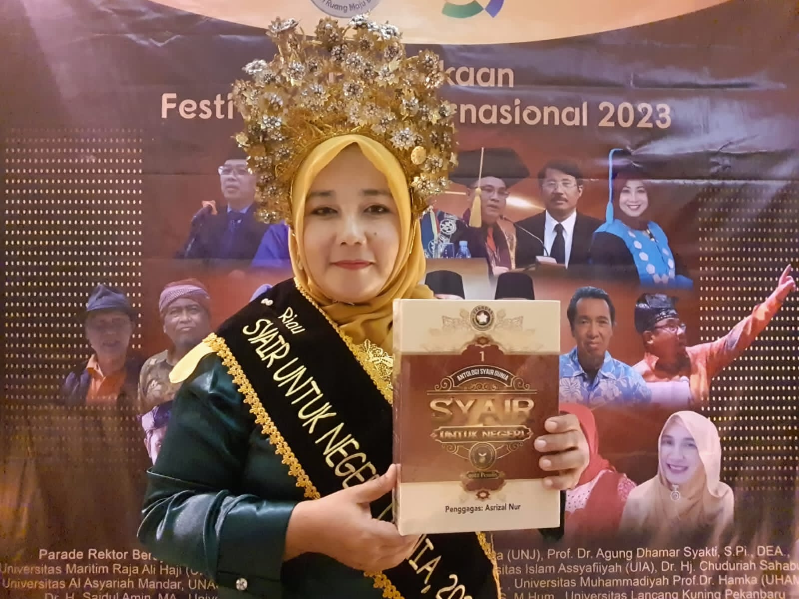 "Di rangkaian acara tersebut salah satunya Parade Syair untuk Negeri semua provinsi diwakili 6 orang dan negara lain 6 orang. Nah saya mengisi kegiatan parade syair untuk negeri ini mewakili Riau bersama rekan saya juga dari Riau," Jelas Bunda Arni.