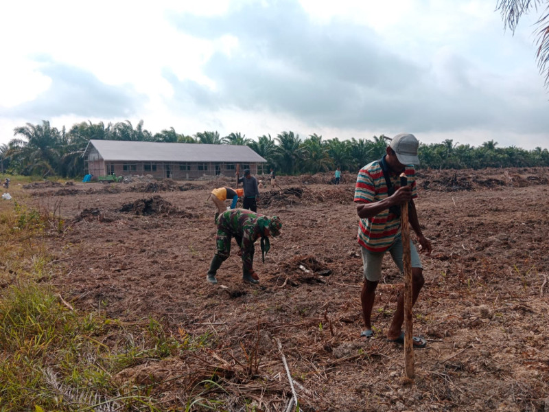 Serda Bambang Irwanto bersama petani setempat terlihat antusias dalam kegiatan penanaman benih padi Gogo. Mereka bekerja sama untuk menyiapkan lahan dan menanam benih dengan teknik yang benar agar mendapatkan hasil yang optimal.