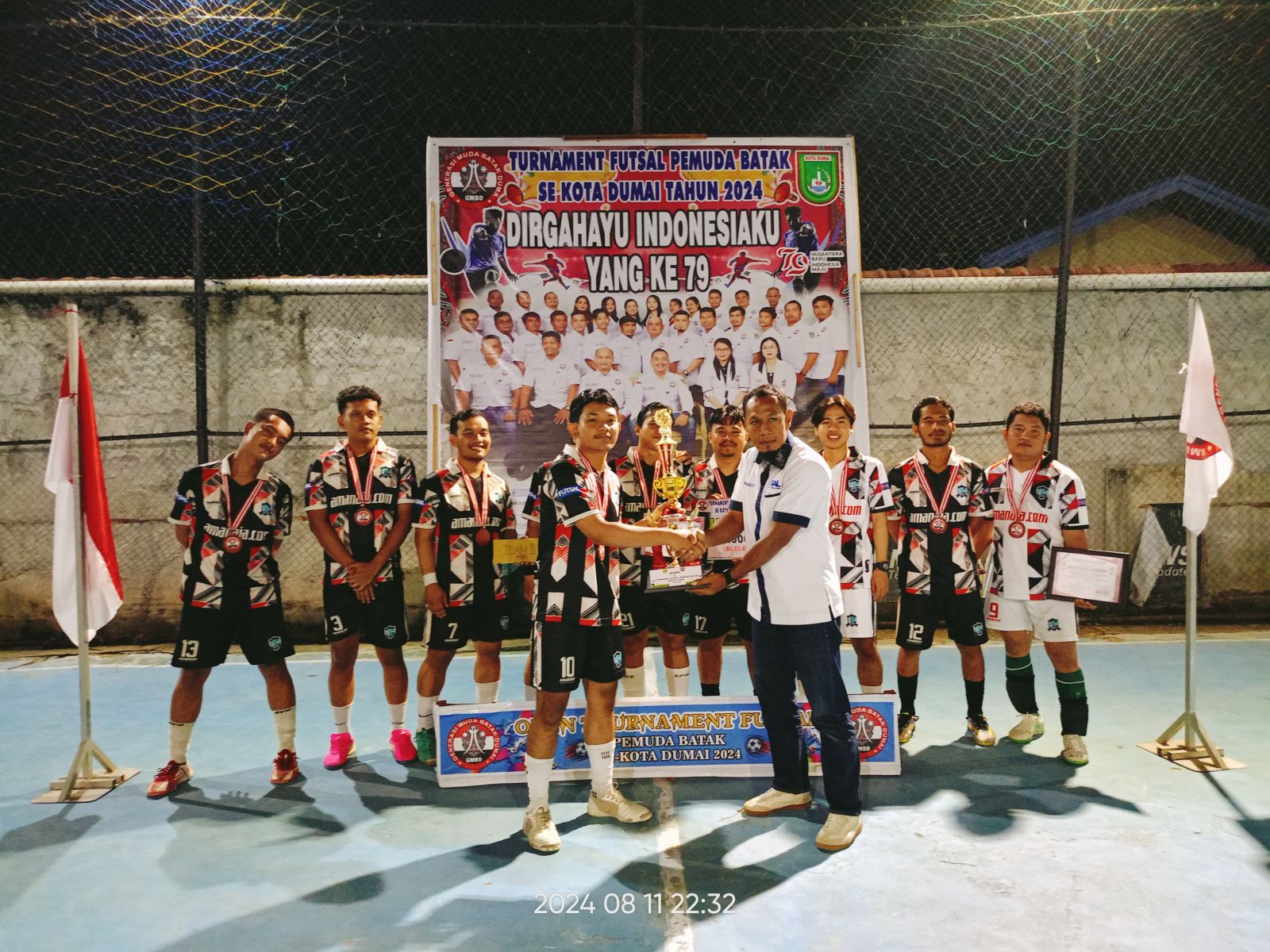 DUMAI (MR) - Generasi Muda Batak Dumai (GMBD) sukses menggelar turnamen futsal antar pemuda Batak se Kota Dumai di lapangan Timo Futsal Jl Merdeka Baru, muai Jumat (9/8/2024) hingga Minggu (11/8/2024).