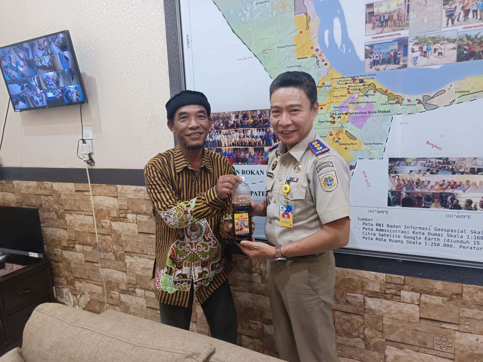 Pertemuan yang berlangsung hangat tersebut digelar di ruang kerja Kepala Kantor Pertanahan Kota Dumai. Dalam kesempatan itu, Hariawan tidak hanya menjalin komunikasi dan sinergi kelembagaan, tetapi juga menyerahkan secara simbolis produk madu murni hasil produksi Usaha Mikro Kecil dan Menengah (UMKM) binaan Pujakesuma Dumai.