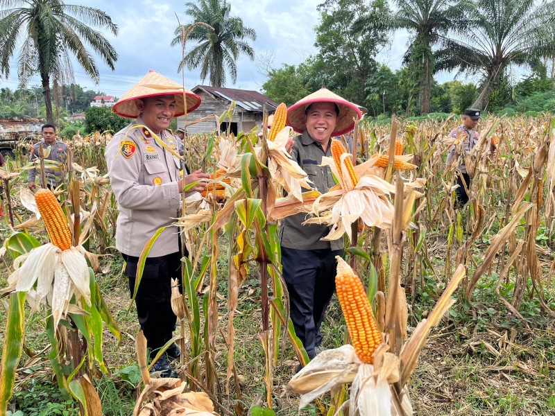 "Alhamdulillah, hari ini kita berhasil melaksanakan panen raya jagung di lahan Polsek Bukit Kapur. Kegiatan ini merupakan bagian dari kontribusi kami dalam mendukung program ketahanan pangan nasional untuk kuartal pertama tahun 2026," ujar Waka Polres Dumai.
