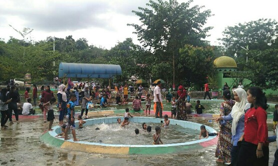 Masjid Agung dan Air Panas Hapanasan Rohul Diserbu Warga