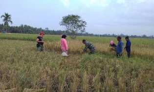 Disela TMMD, Anggota Koramil 07/Reteh Masih Sempat Bantu Petani Panen Padi