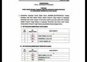 Hasil Seleksi Pejabat Pemko Dumai, Nomor Pendaftaran Rancu dan Tumpang Tindih