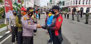 Kapolsek Bersama Upika Rimba Melintang Kampanyekan Pengunaan Masker Kepada Pengendara