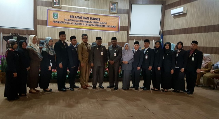 DUMAI (MR) - Sejumlah Aparatur Sipil Negara (ASN) di lingkungan Pemko Dumai dilantik dan diambil sumpahnya oleh Asisten III Setdako Dumai, Khairil Adli, di Aula lantai 4 Sekretariat Daerah, Jalan Tuanku Tambusai, Selasa (11/12/2018).