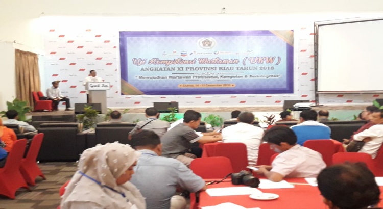 DUMAI (MR) - Persatuan Wartawan Indonesia (PWI) Kota Dumai mengelar pelaksanaan Uji Kompentensi Wartawan (UKW) ke XI Provinsi Riau 2018 dilaksanakan Jum'at (14/12) siang. Penyelenggaraan UKW oleh PWI, bertujuan guna teciptanya wartawan Kompeten, mengangkat tema "Mewujudkan Wartawan Profesional, Kompeten dan Berintegritas".