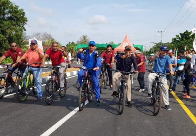 MERANTI (MR) - Untuk menyemarakan hari jadi Kepulauan Meranti ke-10 Tahun 2018, Pemerintah Daerah bersama Perusahaan Mitra, menggelar berbagai perlombaan yang bertujuan untuk menghibur masyarakat. Seperti Lomba Gerak Jalan Santai dan Balap Sepeda yang dibuka langsung oleh Sekretaris Daerah H. Yulian Norwis, Ahad (16/12/2018).