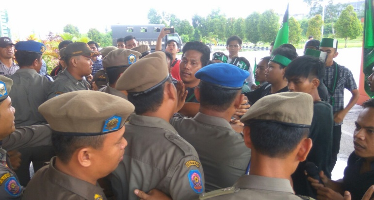 Aksi tersebut berlangsung di Depan Gedung DPRD Kabupaten Indragiri Hilir (Inhil), Jalan HR Soebrantas, Tembilahan, Selasa (18/12/2018) sore.