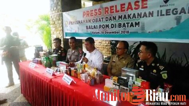 BATAM (MR) - Balai Pengawas Obat dan Makanan di Batam (BPOM) Provinsi Kepri memusnahkan produk obat dan makanan ilegal bertempat di Gedung BPOM Kepri Nongsa Kota Batam, Selasa (18/12/2018).