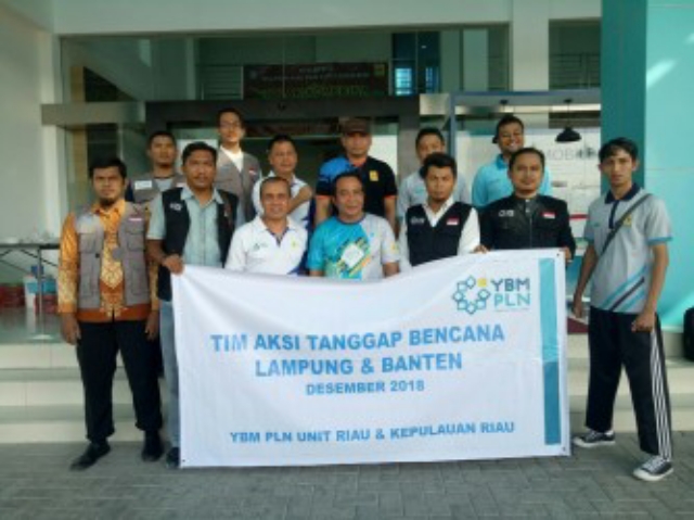 PEKANBARU (MR) - PT PLN (Persero) Unit Induk Wilayah Riau dan Kepulauan Riau (WRKR) melalui Yayasan Baitul Mal (YBM)-nya mengirimkan tim medis ke daerah bencana Tsunami di Lampung. Pelepasan tim yang dilakukan Jumat (28/12/2018) ditandai dengan pemakaian rompi kepada relawan.