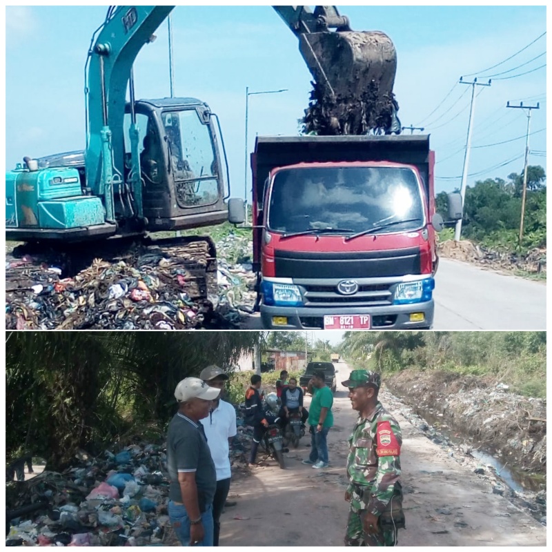 Kodim 0320/Dumai yang diwakili oleh Babinsa Kelurahan Tanjung Palas Serma Azman berkoordinasi dengan Dinas PUPR Kota Dumai menurunkan 1 unit alat berat beko untuk membersihkan tumpukan sampah yang berada di pinggiran jalan dan parit sepanjang Jl. Siliwangi dan Jl. Arifin Ahmad.