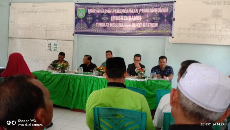 DUMAI (MR) - Bertempat di Aula kantor Kelurahan Bukit Batrem Kamis, (24/1/2019) digelar Rapat Musyawarah Rencana Pembangunan (Musrenbang).