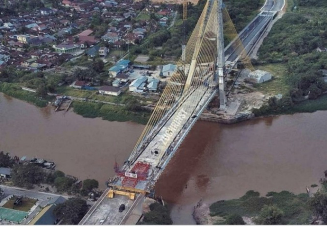 PEKANBARU (MR) - Jembatan Siak IV Pekanbaru atau yang akan diberi nama jembatan Sultan Abdul Jalil Alamuddin Syah (Marhum Bukit) hari ini dilakukan pengujian beban sebelum dioperasikan.