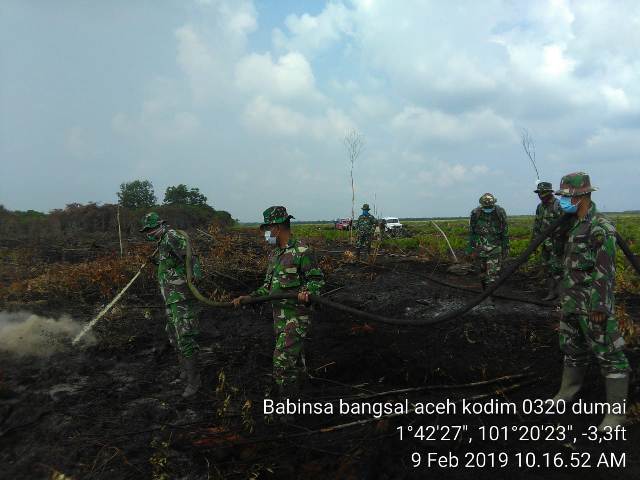 Kodim 0320/Dumai Turunkan Personel Padamkan Karhutla di Bangsal Aceh
