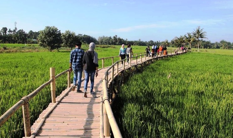 DELISERDANG (MR) - Hamparan sawah luas nan hijau menyegarkan mata saat menyambut pagi di Desa Wisata Kampoeng Lama yang berada di Desa Denai Lama, Kecamatan Pantai Labu, Kabupaten Deli Serdang, Sumatera Utara.