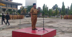 PEKANBARU (MR) - Seluruh ASN di lingkungan Pemprov Riau dikumpulkan di halaman kantor Gubernur Riau, Senin, 18 Februari 2019.
