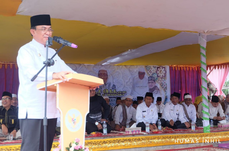 TEMBILAHAN (MR) - Bupati Kabupaten Inhil, HM Wardan menghadiri Haul Akbar Syekh Abdul Qadir Al-Jailani. Pada momen keagamaan yang rutin dilaksanakan di setiap tahunnya itu, Bupati sempat mengenang masa 1 tahun silam.