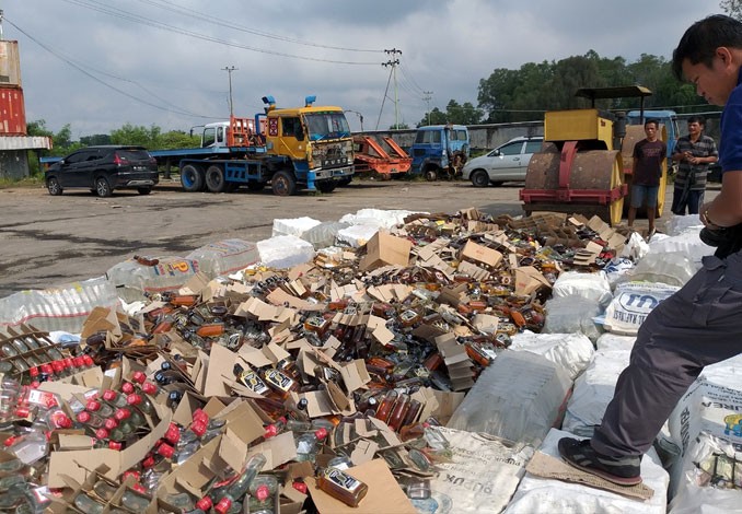 Puluhan Ribu Miras Oplosan Dimusnahkan di Pelabuhan Tanjung Datuk