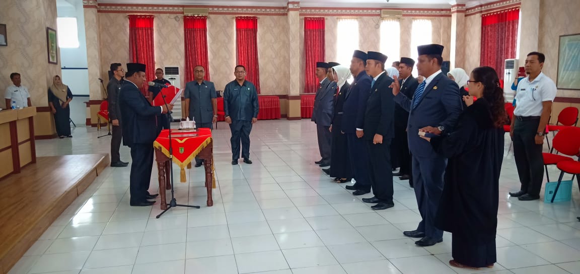 BAGANSIAPIAPI (MR) - Wakil Bupati Rokan Hilir, H Djamiluddin melantik 4 Pejabat Kepala Unit Pelaksama Teknis Dinas (UPT) Badan Pendapatan Daerah (Bapenda), 4 Kepala Sub Bagian TU UPT dan 3 Kepala Sekolah tingkat Sekolah Lanjutan Tingkat Pertama (SLTP),Rabu (27/02) dilantai 4 Kantor BPKAD Rohil,Jalan Merdeka Bagansiapiapi.