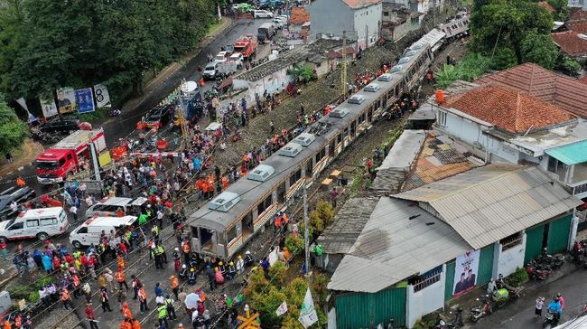 "Proses evakuasi tiga kereta dari KA 1722 yang mengalami anjlok pada Minggu 10 Maret 2019 telah selesai dilakukan. Kereta terakhir dapat dievakuasi melalui pengangkatan kembali ke rel pada pukul 01.50 WIB. Kereta tersebut akan ditarik ke Dipo KRL Bogor untuk pemeriksaan dan perbaikan lanjutan," ujar Eva kepada CNNIndonesia.com.