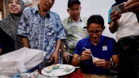 "Nikmat kopinya, pisangnya juga crispy, renyah," ujar Sandi dalam rilis yang dikirim Badan Pemenangan Nasional (BPN).