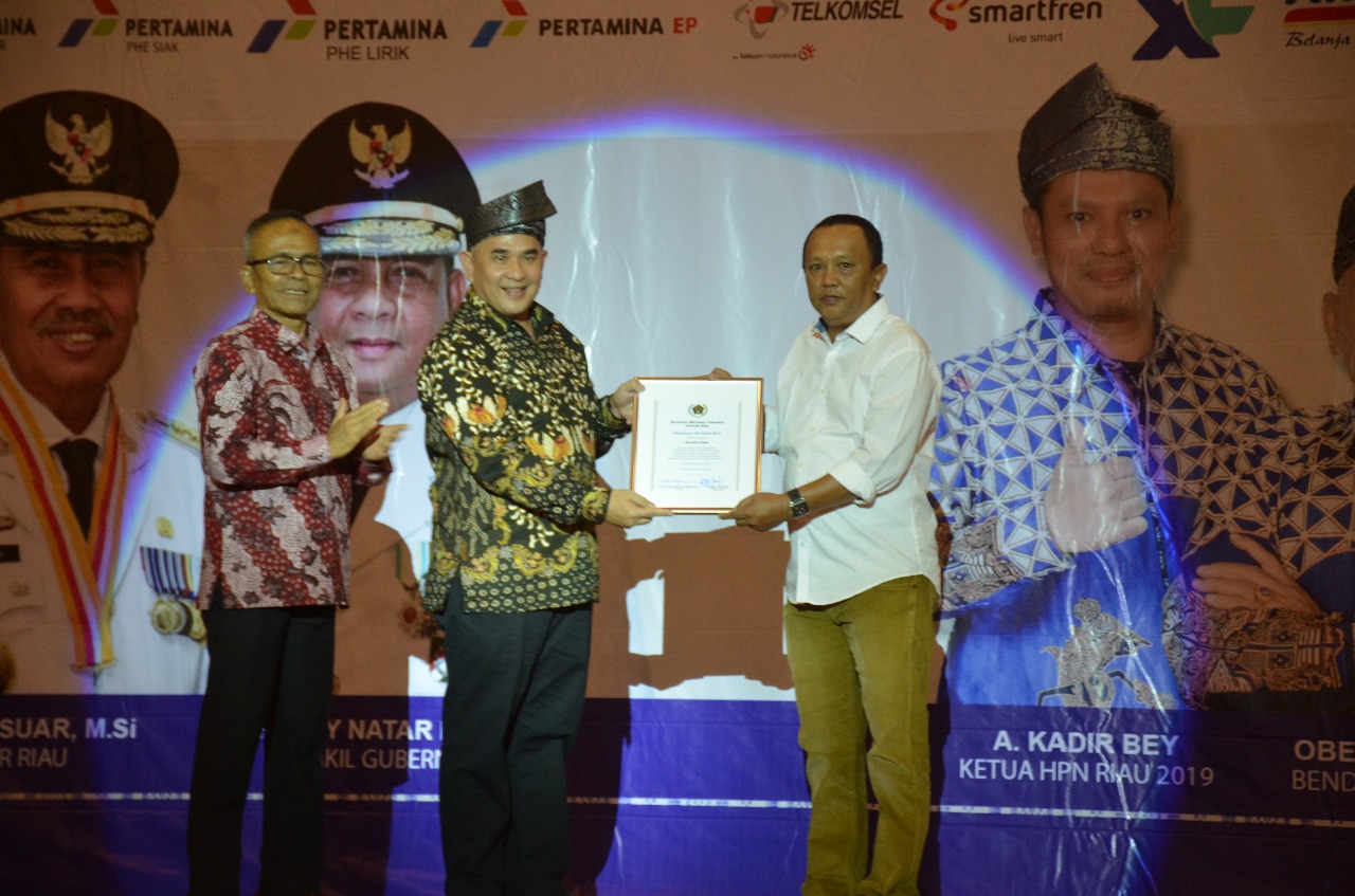 Penghargaan tersebut diberikan langsung oleh ketua PWI Riau, Zulmansyah Sekedang pada malam resepsi Hari Pers Nasional (HPN) 2019 Provinsi Riau, pada Senin (25/3/2019).