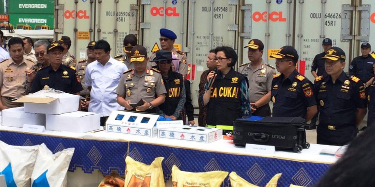 MonitorRiau.com - Menteri Keuangan Sri Mulyani bersama dengan Menteri Kelautan dan Perikanan Susi Pudjiastuti hari ini melakukan konferensi pers atas penggagalan 3 kasus penyelundupan senilai miliaran rupiah.