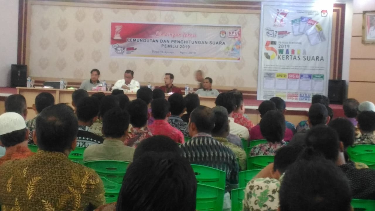 BAGANSIAPIAPI (MR) - Bupati Rokan Hilir H Suyatno, membuka bimbingan teknis (Bimtek) Pemungutan dan Penghitungan Suara pemilu 2019, senin (8/4) di Gedung Misran Rais, Bagansiapiapi.