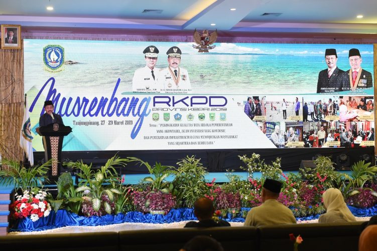 Membuka sambutan, Nurdin terlebih dahulu menyampaikan ucapan terimakasih kepada seluruh jajaran pemangku kepentingan beserta elemen masyarakat se Provinsi Kepulauan Riau atas sumbangsih pemikiran masukan dalam mengikuti rangkaian pelaksanaan Musrenbang demi terlengkapinya Dokumen RKPD tahun 2020.