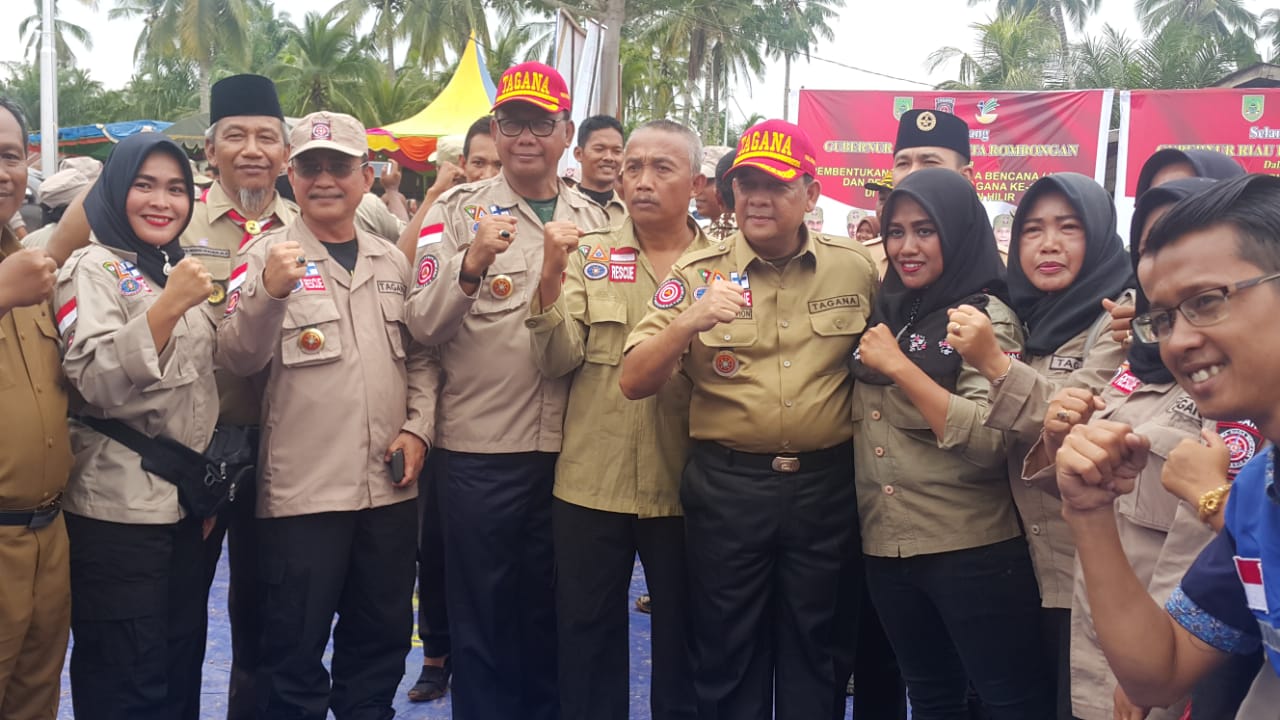 PEKAITAN (MR) - Wakil Gubernur Riau Brigadir Jendral (Purnawirawan ) Edy Natar Nasution beserta rombongan menghadiri acara pengukuhan dan pembentukan Kampung Siaga Bencana (KSB) sekaligus memperingati HUT Tagana ke 5 yang di gelar di Kepenghuluan Karya Mulya Sari Rokan Baru Kecamatan Pekaitan Selasa (30/04) Dilapangan SMP Negeri 02 Rokan Baru Rohil.