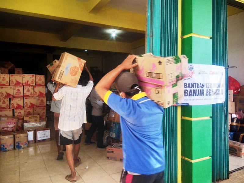 Bantuan terdiri dari bahan pangan, keperluan sanitasi, dan obat-obatan. Bongkar muat bantuan pun dilakukan di gudang logistik Aksi Cepat Tanggap Bengkulu, Kelurahan Rawa Makmur.