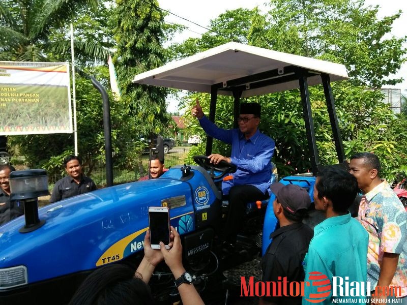 Bupati H Suyatno Amp mencoba traktor untuk lahan pertanian di Kecamatan Rimba Melintang Kabupaten Rohil