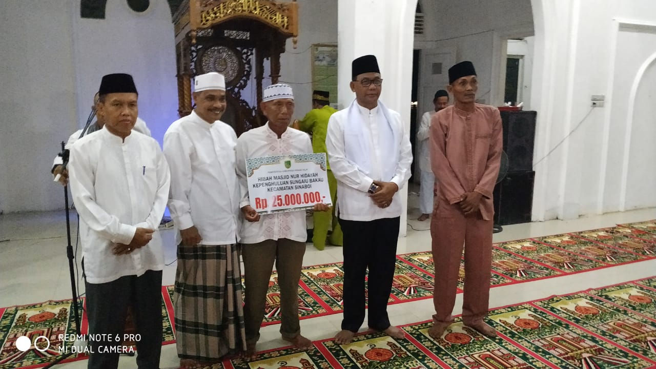 SINABOI (MR) - Bupati Rohil H Suyatno melaksanakan Safari Ramadan perdana 1440 H tahun 2019 di Masjid An-Nur Hidayah, Kepenghuluan Sungai Bakau Kecamatan Sinaboi, Kamis (16/5) malam kemaren.
