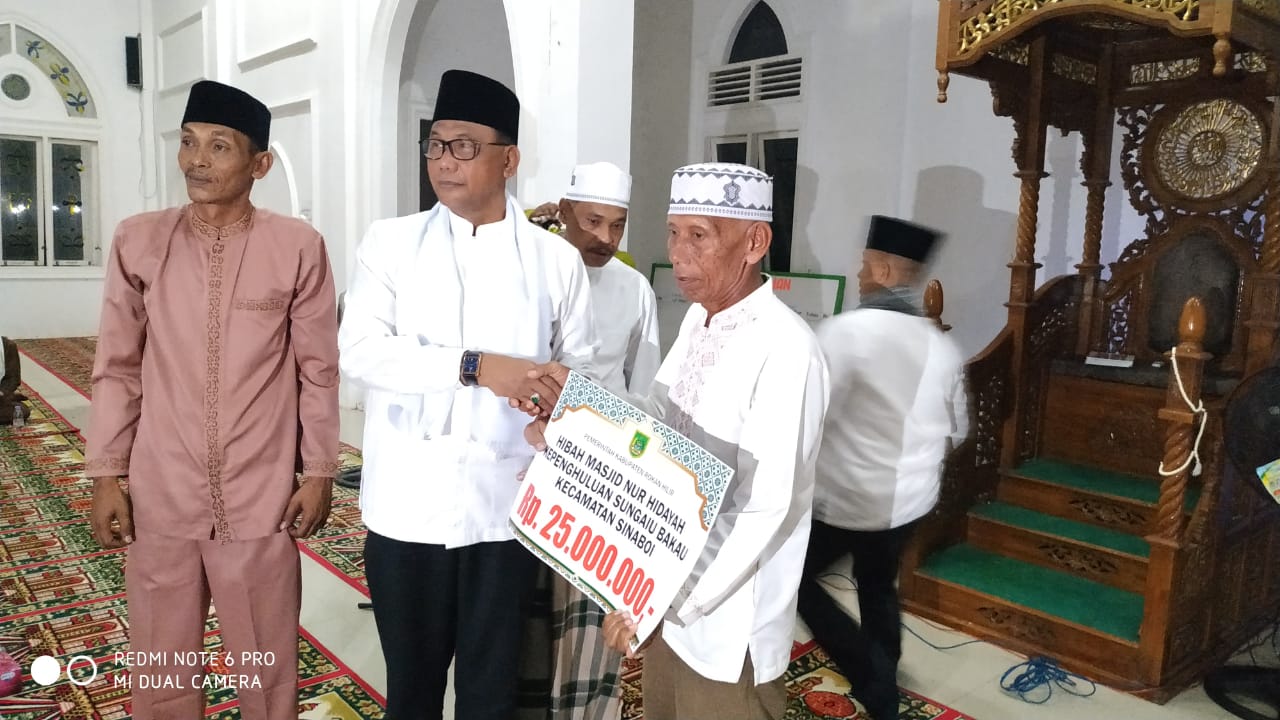 Acara ini Pemkab Rohil memberikan sumbangan pembangunan kepada dua buah rumah ibadah dengan masing-masing bantuan Rp50 juta yang langsung diserahkan Bupati Rohil Suyatno kepada pengurus Masjid.