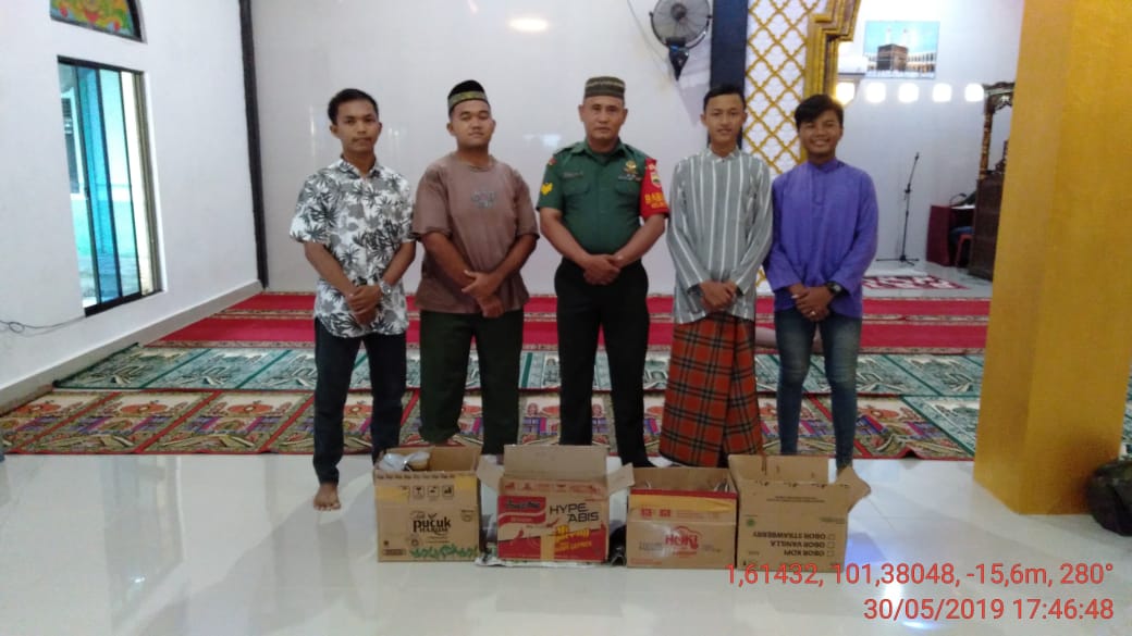 "Saya mewakili pengurus mesjid, mengucapkan ribuan terima kasih kepada pak babinsa yang mewakili Dandim 0320/Dumai sudah mampir kesini dan menyerahkan bantuan takjil ini," Kata Riki.