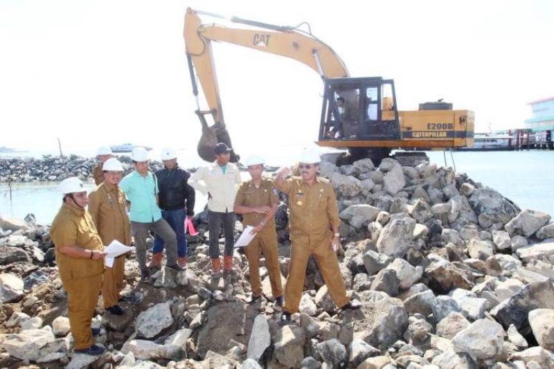 Nurdin tiba dilokasi langsung mengelilingi kawasan tepi laut mulai dari Anjung Cahaya hingga di samping Pelabuhan SBP (depan Gedung Daerah) yang saat ini telah dilakukan penimbunan pasir serta pemasangan batu miring penahan gelombang sehingga mobil dapat berlalu lalang dilokasi tersebut.