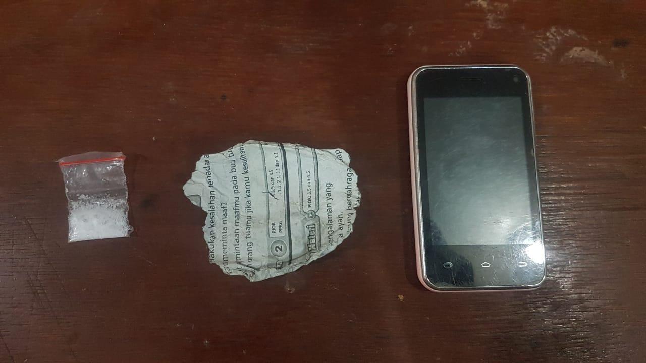 Tepat pukul 22.30 WIB, Tim menggerebek dan menggeledah badan pelaku hingga ditemukan sejumlah barang bukti diantaranya 1 paket Shabu dengan berat kotor 0,66 gram seharga Rp. 1,5 juta dan 1 unit Hand phone (Hp) merk i-Cherry warna ping yang digunakan sebagai alat komunikasi transaksi.