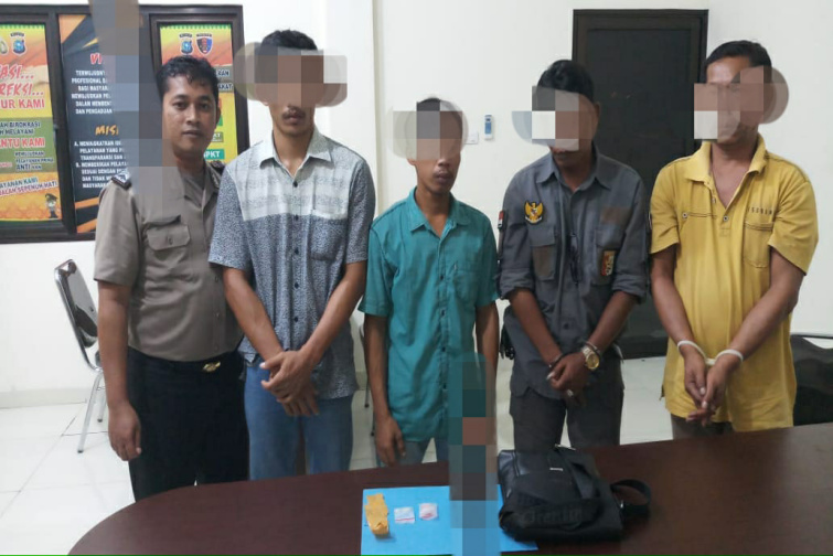 PANKALANKERINCI (MR) - Polres Pelalawan kembali mengamankan 4 pelaku Tindak Pidana Narkotika Jenis Sabu-sabu, Jumat (14/6) bertempat di Jalan Datuk Laksemana RT 002/RW 005, Kelurahan Sorek Satu, Kecamatan Pangkalan Kuras, Kabupaten Pelalawan, Riau.