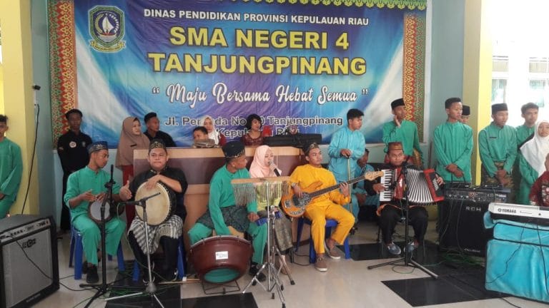 Rombongan juga disambut dengan Tari persembahan dan music live melayu yang dibawakan oleh siswa-siswi SMAN 4 Tanjungpinang dengan menghadirkan Kiki Lida 2019 Indosiar, dimana Kiki juga merupakan guru seni di SMAN 4 Tanjungpinang. (Rudi)