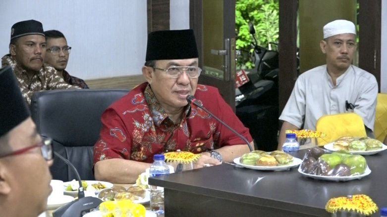 TEMBILAHAN (MR) - Bupati Kabupaten Inhil, HM Wardan memimpin jalannya rapat persiapan pemberangkatan dan pemulangan Jemaah Calon Haji Kabupaten Inhil Tahun 2019, Rabu (27/6/2019) malam, di kediaman dinas Bupati Kabupaten Inhil, Tembilahan.