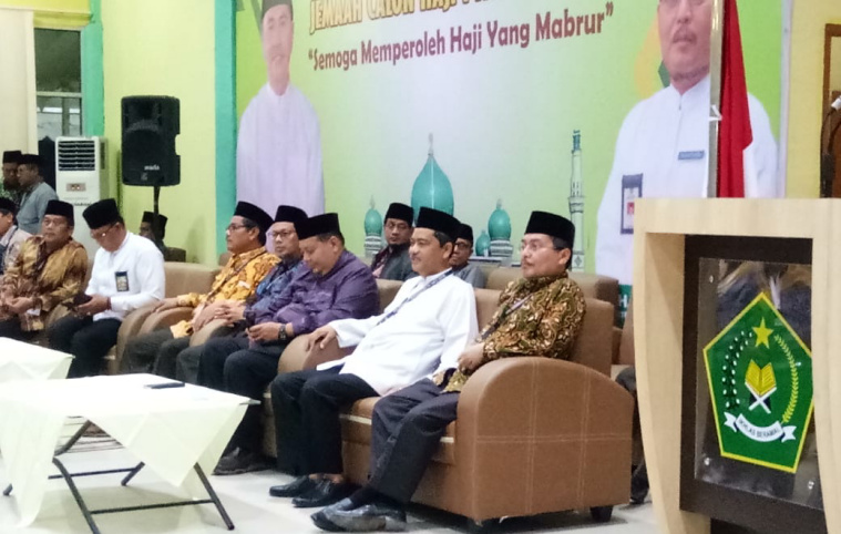 TEMBILAHAN (MR) - Bupati Kabupaten Inhil, HM Wardan kembali melepas keberangkatan Jemaah Calon Haji yang tergabung ke dalam kloter 3 asal Kabupaten Inhil melalui embarkasi antara Provinsi Riau menuju Madinah, Minggu (7/7/2019) pagi.