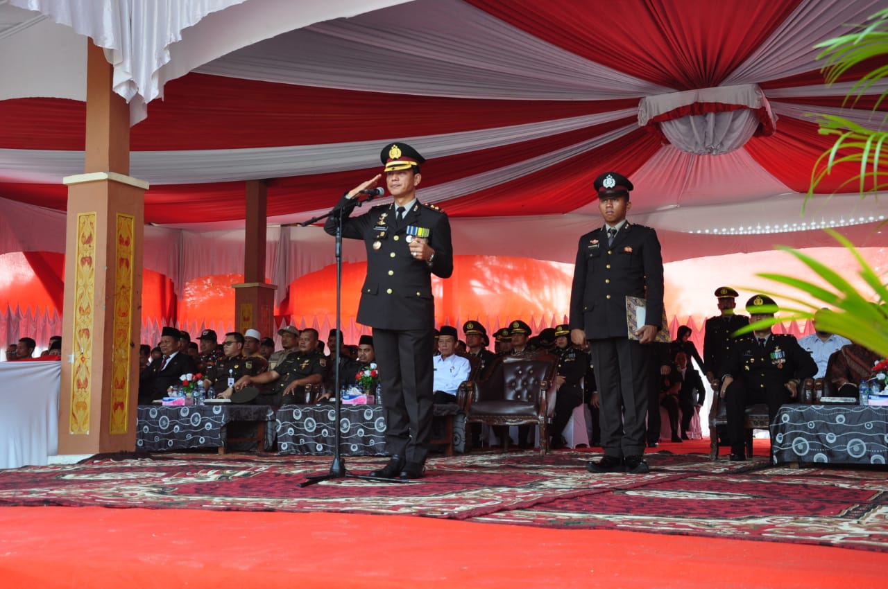 Kapolres Pelalawan AKBP Kaswandi Irwan, selaku Inspektur Upacara berkesempatan membacakan amanat tertulis Presiden RI Joko Widodo. Ini petikannya.