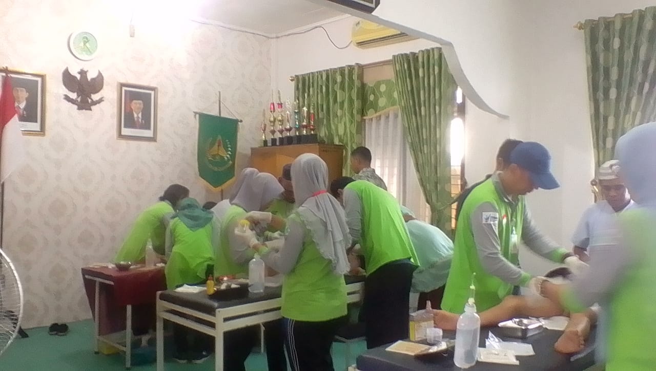 PANGKALANKERINCI (MR) - Dalam rangka menyambut Hari Bhakti Adhyaksa (HBA) ke 59, Dinas Kesehatan Kabupaten Pelalawan menggelar kegiatan bhakti sosial berupa khitanan massal dan pemeriksaan kesehatan secara gratis, bertempat di Halaman Kantor Kejaksaan Negeri (Kejari) Kabupaten Pelalawan, Riau, Kamis (18/7) kemarin.
