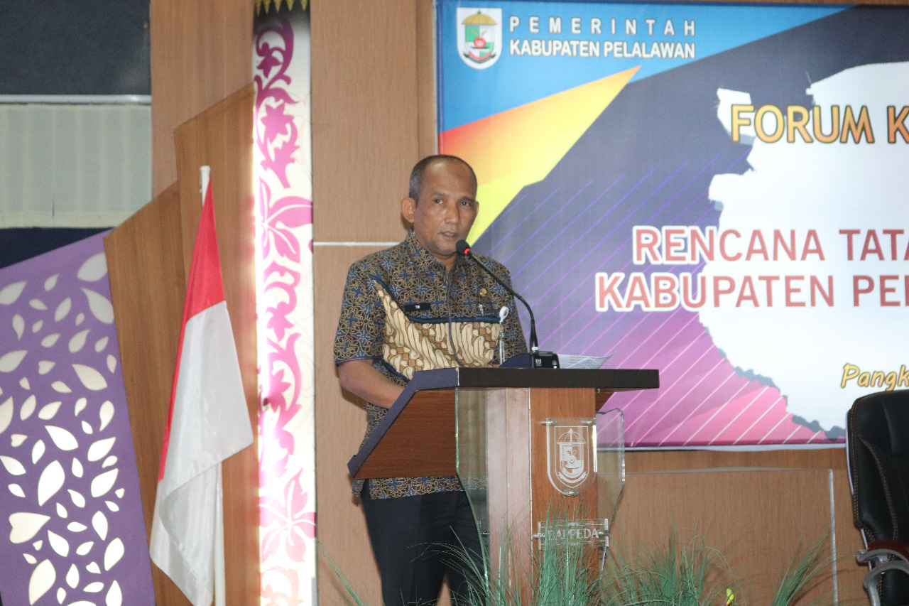 Setdakab Pelalawan T Mukhlis saat memberikan paparan dalam forum konsultasi RTRW kab Pelalawan.